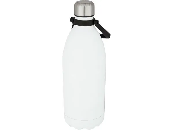 Белая бутылка чрезвычайно большого размера из нержавеющей стали с вакуумной изоляцией и культовым дизайном, оснащенная комфортной ручкой для удобства переноски. Благодаря изоляции и нержавеющей стали 18/8 напитки несколько часов остаются горячими или холодными.