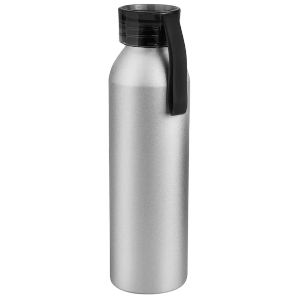 Алюминиевая матовая серебристо-черная бутылка Viking Silver с пластиковой крышкой. Крышка — прозрачный пластик с силиноновой петелькой в цвет крышки.