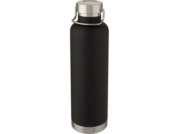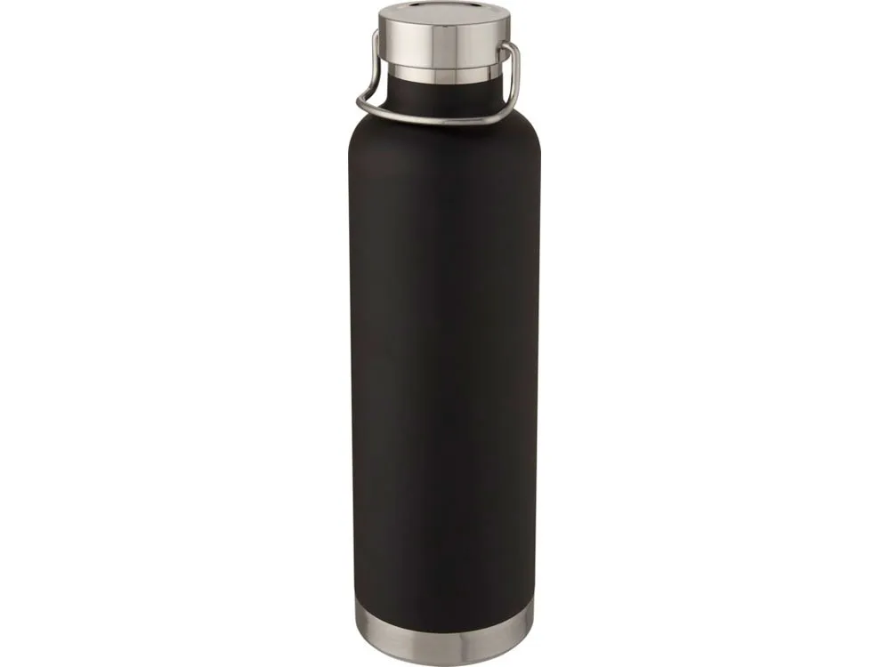Большая, черная спортивная бутылка с двойной стенкой и вакуумной конструкцией из нержавеющей стали 18/8 и медной изоляцией, которая сохраняет напитки горячими или холодными в течение нескольких часов. Конструкция также предотвращает образование конденсата на внешней стороне бутылки, а модное порошковое покрытие делает ее чрезвычайно прочной. Навинчивающаяся герметичная крышка из нержавеющей стали с прочной, выполненной из нержавеющей стали, петлей для руки. Широкое отверстие для легкого заполнения, разливания и очистки.