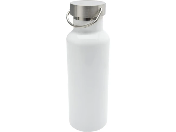 Прочная белая бутылка для воды из нержавеющей стали с двойными стенками, вакуумной изоляцией, сертифицированная RCS, с завинчивающейся крышкой из нержавеющей стали и прочной ручкой-петлей из нержавеющей стали.