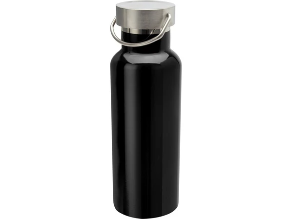Прочная черная бутылка для воды из нержавеющей стали с двойными стенками, вакуумной изоляцией, сертифицированная RCS, с завинчивающейся крышкой из нержавеющей стали и прочной ручкой-петлей из нержавеющей стали.