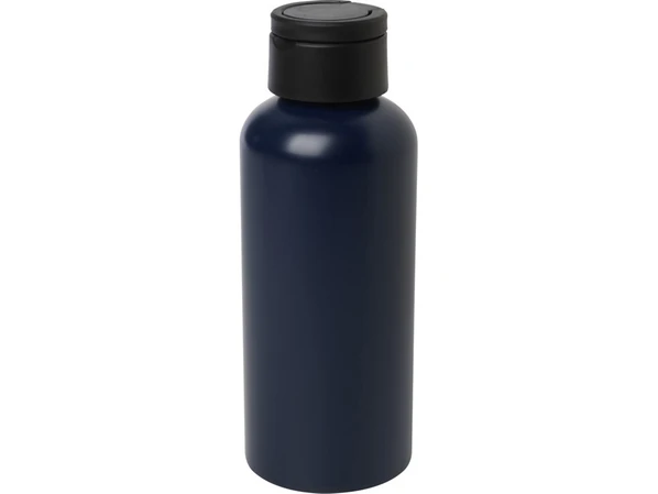 Стильная темно-синяя бутылка для воды из переработанного алюминия, сертифицированного согласно RCS, с элегантным дизайном. Имеет крышку из переработанного пластика с отдельной петлей для переноски.