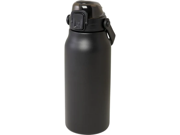 Эта большая черная бутылка Giganto из переработанной нержавеющей стали, сертифицированной RCS, позволит вам поддерживать водный баланс в течение дня и оставаться стильным. Медная вакуумная изоляция сохранит напитки горячими или холодными в течение нескольких часов, а благодаря складной ручке ее легко переносить