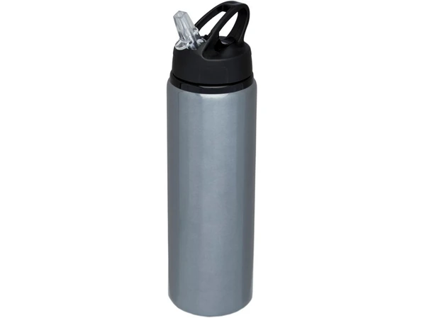 Алюминиевая бутылка серого цвета Fitz с одинарными стенками и съемной крышкой с откидным носиком для питья. На крышке есть ручка для удобной переноски.