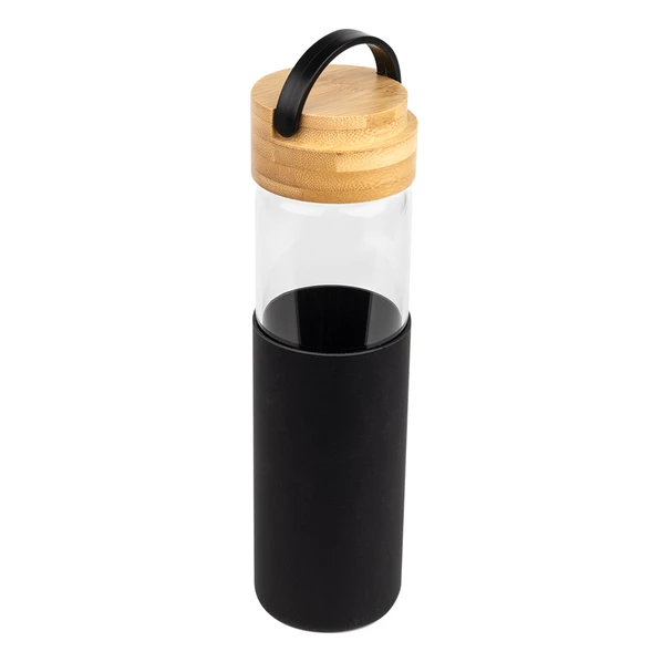Бутылка стеклянная с силиконовой манжетой и бамбуковой крышкой Glass, 500 мл, черная
