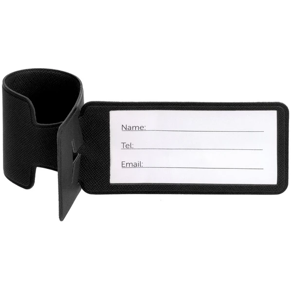 Багажная бирка черного цвета Devon от бренда Сделано в России. Изделие выполнено из искусственного материала, имитирующего сафьяновую кожу.
