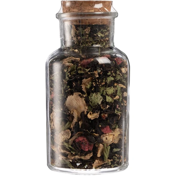 Черный крупнолистовой чай с кусочками имбиря, сублимированной малиной и сушеной мятой обладает многогранной палитрой вкуса и аромата.