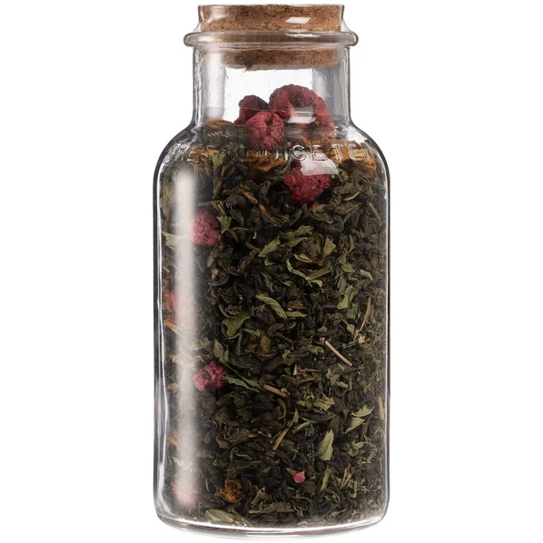 Состав: чай зеленый с ананасом и соком ананаса (чай зеленый байховый крупнолистовой, кусочки ананаса, сок ананаса), малина сублимированная, мята сушеная, ароматизатор натуральный «малина».