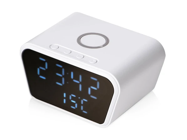 Белые настольные часы с функцией беспроводной зарядки позволят не только вовремя проснуться, но и восполнить за ночь уровень батареи вашего смартфона. Зеркальный LED-дисплей часов интересно выглядит в интерьере, а степень яркости можно изменить под себя.