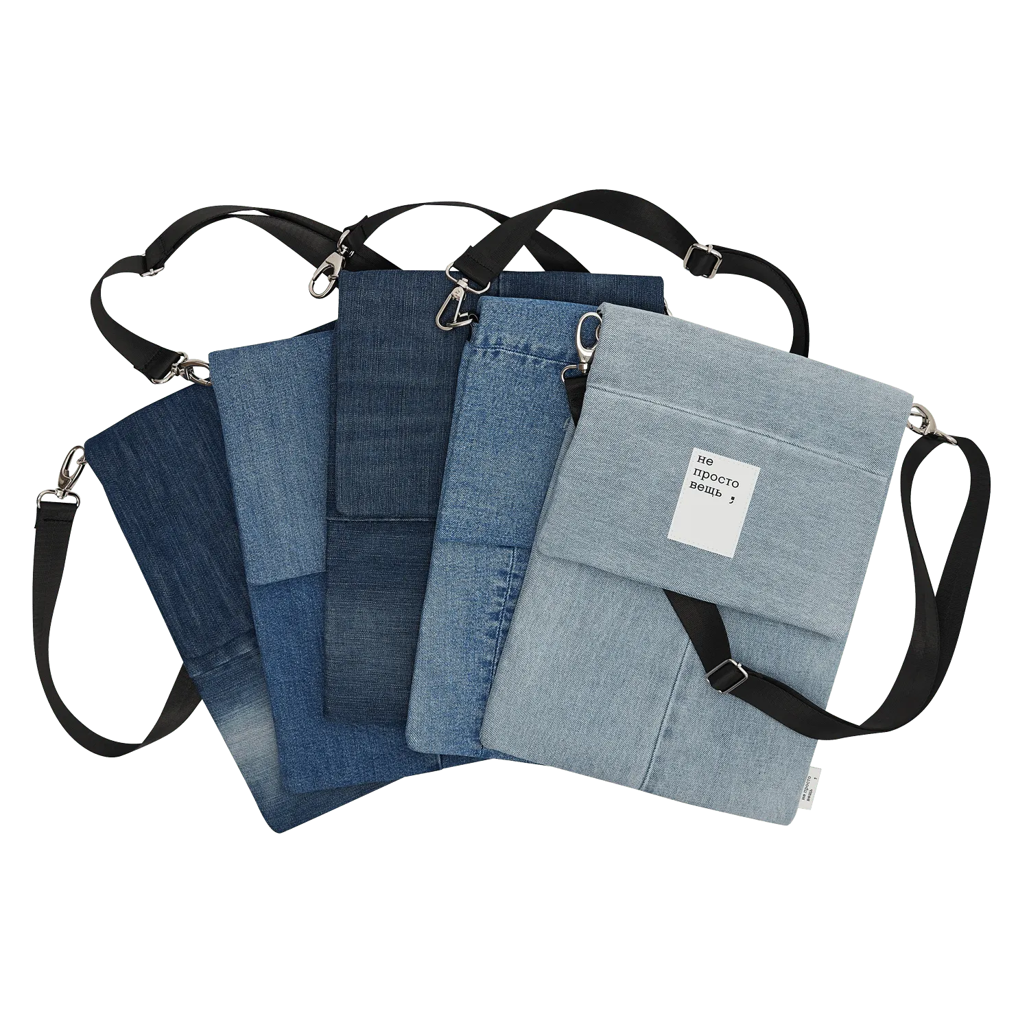 Джинсовая ткань, прошедшая сквозь время, обретает новую жизнь, становясь символом устойчивого развития и индивидуального стиля. Съемная ручка позволяет использовать и как практичный шоппер, делая его еще более универсальным.