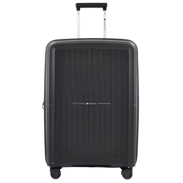 Надежный черный чемодан Santiago M. Коллекция Santiago — искусно подобранное сочетание функциональности, строгости и элегантности. Каждый чемодан изготовлен из прочного полипропилена, что гарантирует его долговечность и защиту вещей во время путешествия.