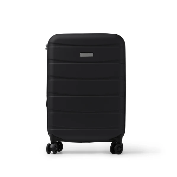Жесткий черный чемодан Foldy на колесиках сделан из переработанного полиэстера RPET. Трансформируемый объём. Колеса-спинеры облегчают перемещение в любом направлении. Подходит для ручной клади.