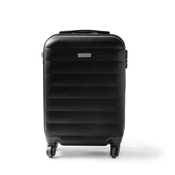 Жесткий черный чемодан Volano на колесиках сделан из прочного АБС-пластика. Внутри два основных отделения и карман-сетка на молнии. Кодовый замок.