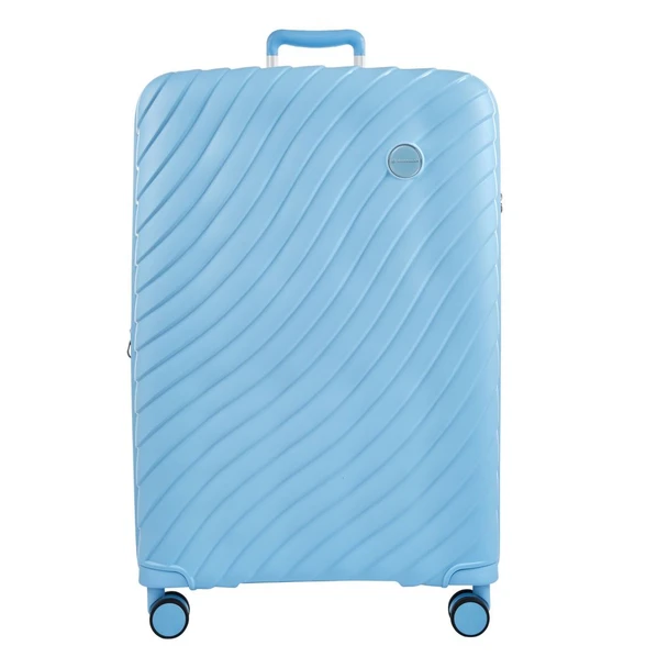 Универсальный голубой чемодан из женственной коллекции Victoria имеет стильную обтекаемую форму и узор с плавными волнами, который выделяют его среди других. Нежные оттенки придают чемодану элегантный вид, подчеркивая индивидуальность и хороший вкус путешественницы.