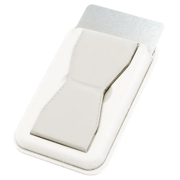 Встроенная складная подставка превращает этот аксессуар в универсального помощника. Вы можете установить ваш телефон в удобное положение для просмотра видео, видеозвонков или для работы с приложениями. Благодаря надежной клейкой основе, держатель легко и прочно крепится на заднюю панель вашего телефона. Теперь вы можете забыть о необходимости постоянно доставать карты из бумажника или сумки - они будут всегда под рукой.