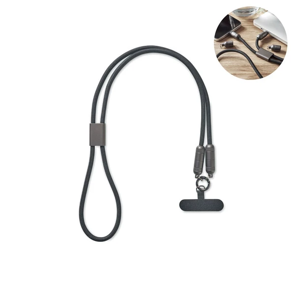 Держатель-ланьярд для телефона с зарядным кабелем, черный