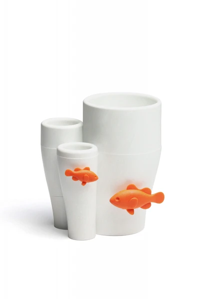 Фигурки рыбок – это напоминание о необходимости заботиться об окружающей среде, сократить выбросы отходов в мировой океан, замедлить климатические изменения. Органайзер включает 3 секции: две маленькие для щеток или бритвенных станков и большую – для тюбика с зубной пастой. Органайзер произведен из 6-ти переработанных пластиковых бутылок.