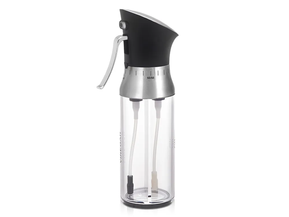 Этот умный дозатор оснащён двумя отдельными емкостями для масла и уксуса, которые можно использовать как по отдельности, так и смешивать одним поворотом механизма. Стильный и современный аксессуар, который украсит любую сервировку.