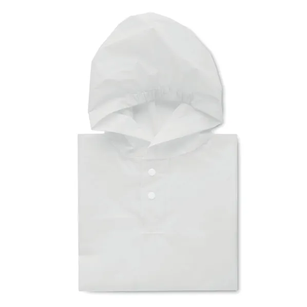 Практичный белый детский дождевик из PEVA. Подходит для детей возрастной группы 2-5 лет. Модель с капюшоном.