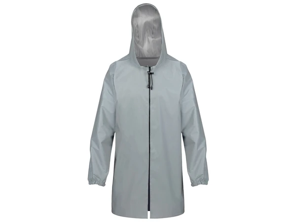 Дождевик-плащ из светоотражающей ткани подойдет как для ежедневного использования, так и для мероприятий на улице, обеспечивая безопасность и заметность в темное время суток.