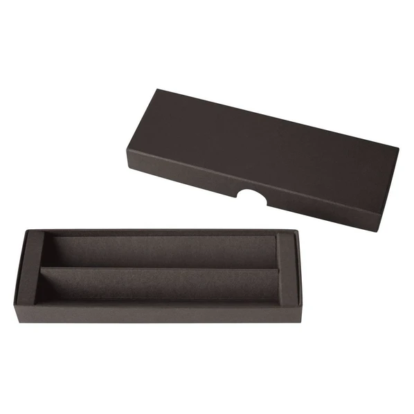 Картонный футляр для одной или двух вещей будет полезен в рабочем кабинете. Его можно взять с собой на деловую встречу или в команидровку, чтобы обеспечить сохранность вещам. Матовый, черного оттенка, лаконичный дизайн. Картонная крышка съемная.