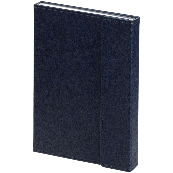 Классический синий ежедневник с клапаном на магните, выполнен из материала Petrus. Блок 210, с информационным блоком:
