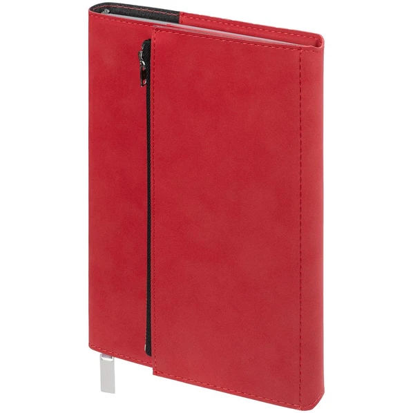 Классический красный ежедневник Grace в гибкой суперобложке c карманом на молнии, выполнен из материала Nubuck. Дополнен капталом и металлической шильдой на ляссе серого цвета.