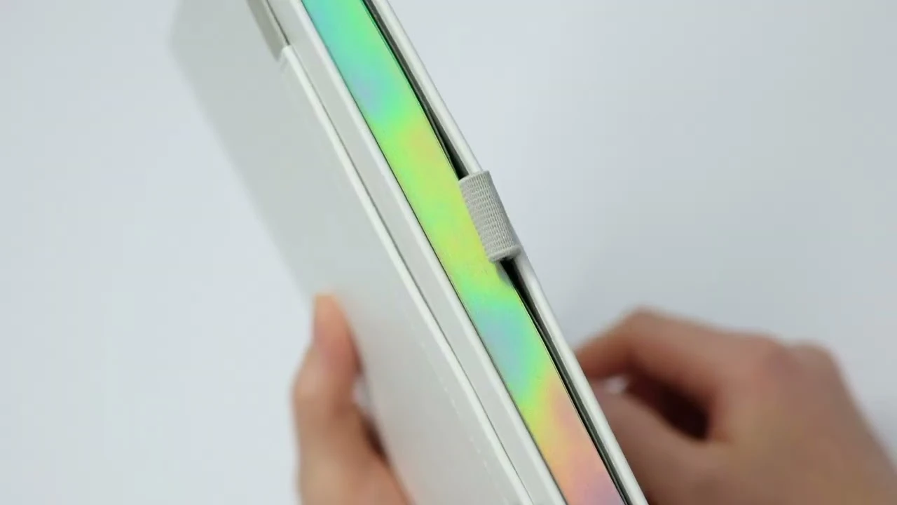 - Вертикальная резинка-фиксатор с вставкой из ПУ-материала обложки и петелькой под ручку