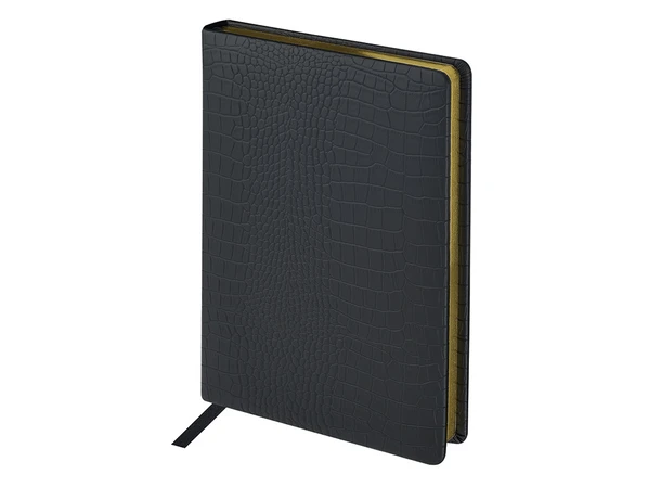 Обложка, имитирующая кожу рептилии, золотой обрез и закладка-ляссе в тон подчеркивают его премиальный статус. Бумажный блок, закрепленный книжным переплетом, выполнен из бежевой офсетной бумаги плотностью 70 г/ кв м.