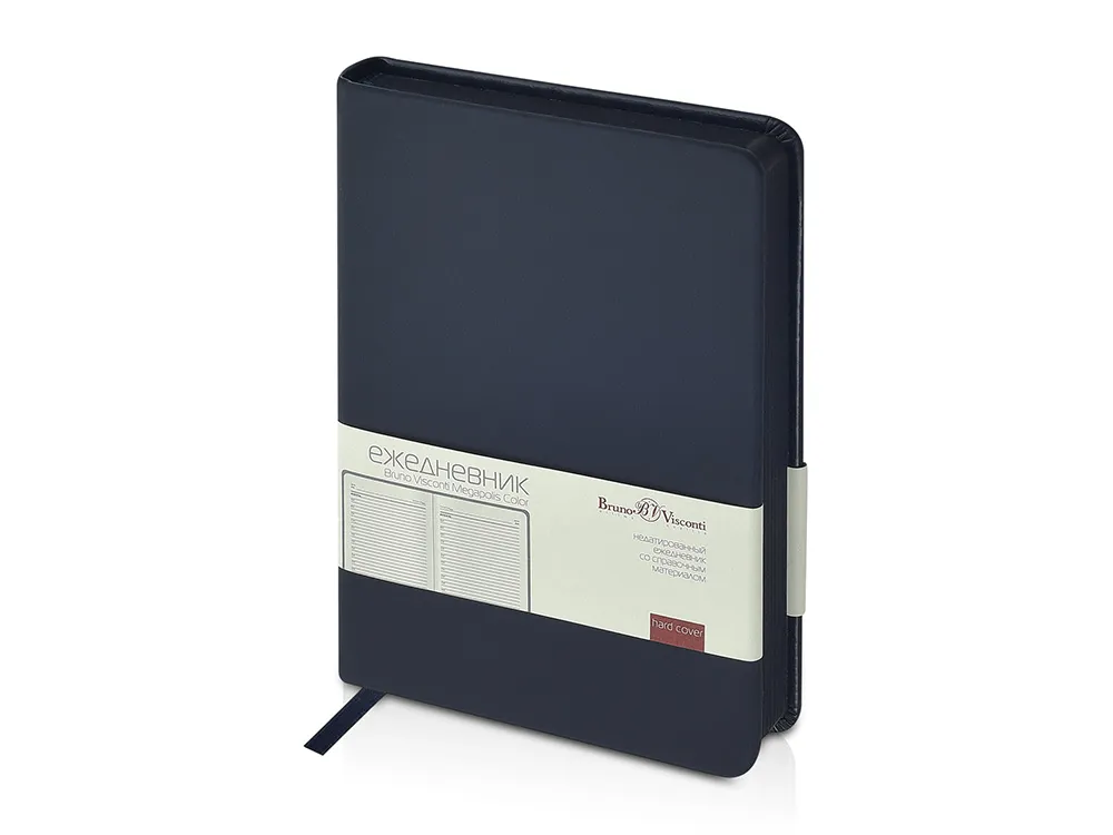Стильный и современный, практичный и удобный, недатированный темно-синий ежедневник Megapolis Color от Bruno Visconti для планирования рабочего времени и ведения деловых записей. Обложка изготовлена из искусственной кожи с Soft Touch покрытием. Обрез выполнен в цвет обложки ежедневника.