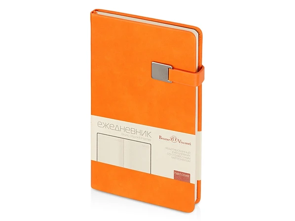 Недатированный оранжевый ежедневник Premier формата А5 (125х208 мм) от Bruno Visconti - удобный и функциональный в эксплуатации. Твердую обложку из высококачественной искусственной кожи дополняет металлический хлястик на магните. Ляссе в цвет обложки позволяет быстро найти нужную страницу.