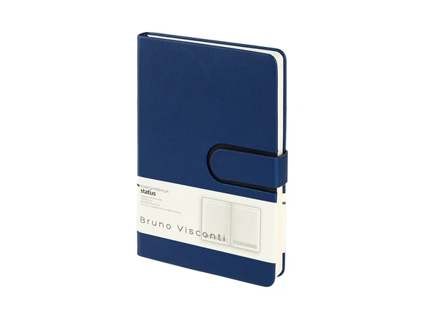 Недатированный синий ежедневник Status формата А5 для тех, кто предпочитает статусный, брутальный деловой аксессуар с неизбитым дизайнерским решением.
