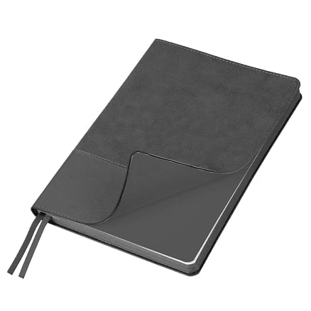 Стильный серый ежедневник. Ежедневник в гибкой обложке. Изготовлен из искусственной кожи в комбинации двух материалов: Nuba и Sand. Материал Nuba выполнен из мягкого кожзама, бархатный, матовый, приятный на ощупь, имитирующий замшу.