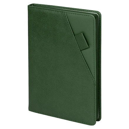 Недатированный зеленый ежедневник Smart Calabria Lafite. Поверхность материала Lafite фактурная, с характерным рисунком прожилок и морщинок, создающим эффект натуральной, состаренной кожи.