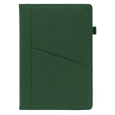 Классический зеленый ежедневник. Материал Ostende выполнен из мягкого кожзама, с рисунком, напоминающим плетеную корзину. Приятная на ощупь текстура, наличие ярких цветов, делает этот материал интересным решением для комбинирования с гладкими текстурами. Караман для заметок на передней части ежедневника и петля для ручки помогут хранить все под рукой. Ляссе двойное. Страницы матовые, со скругленными уголками, бежевого цвета. Плотность бумаги 80 гр/м2. Срез, форзац и нахзац бежевого цвета. Ежедневники уникальны своим сочетанием материала и дизайна. Внутренний блок разработан с учетом пожеланий клиентов.