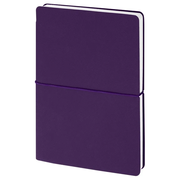 Ежедневник с гибкой обложкой выполнена из материала Nice Touch, фиолетовый и Latte, фиолетовый (внутренняя часть обложки), дополнен горизонтальной резинкой в цвет обложки. Внутри корешка — специальное место для крепления ручки размером до 15х1 см.