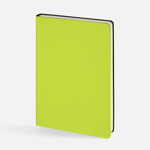 Светло-зеленый ежедневник с гибкой обложкой, выполнен из переплетного материала на полиуретановой основе с покрытием soft touch.