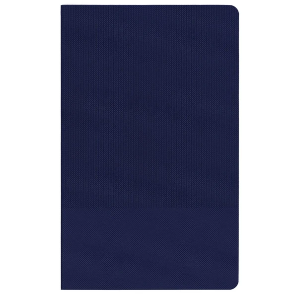 Ежедневник с гибкой обложкой, выполнен из материала Canyon, темно-синий ХХ, дополнен ляссе в цвет обложки. Блинтовое тиснение на обложке создает эффект вязаного полотна.