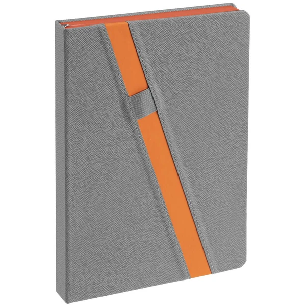 Яркая и стремительная линия сшивки не только для красоты, но и для практичного хранения ручки. Стильный серо-оранжевый ежедневник с твердой обложкой и тонированным обрезом. Выполнен из материала Nice Touch и Soft Touch Ultra, дополнен ляссе.