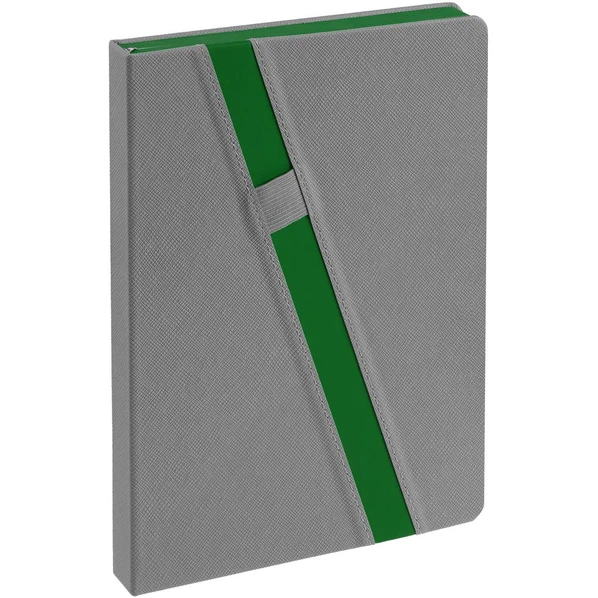 Яркая и стремительная линия сшивки не только для красоты, но и для практичного хранения ручки. Стильный серо-зеленый ежедневник с твердой обложкой и тонированным обрезом. Выполнен из материала Nice Touch и Soft Touch Ultra, дополнен ляссе.