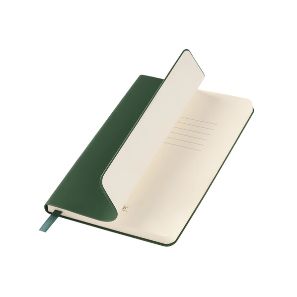 Зеленый недатированный ежедневник в формате А6. Гибкая обложка из качественной искусственной кожи со скругленными уголками. Покрытие с эффектом soft-touch, гладкое, матовое, слегка припудренное, не блестит. Очень приятное на ощупь. Форзац,нахзац и срез кремового цвета. Страницы со скругленными уголками из гладкого шелковистого офсета, кремовые. Одинарное атласное ляссе 6 мм в цвет обложки.
