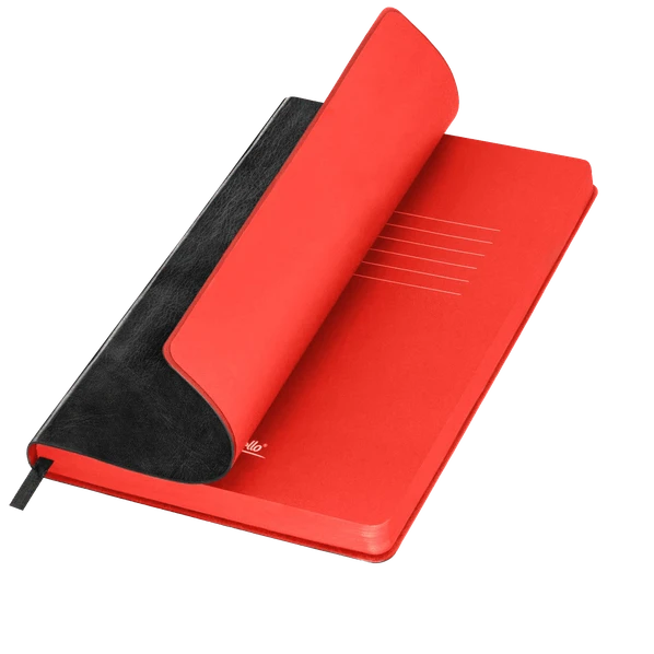 Цвет обложки – классический черный, глубокий, густой, однородный. Тон за счет фактуры может меняться в зависимости от освещения. Цвет матовых форзаца и нахзаца – красный, насыщенный, динамичный. Ярко контрастирует с обложкой.
