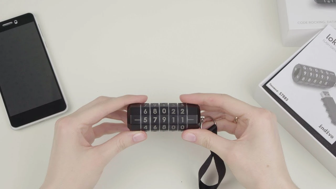 Уникальная флешка с кодовым замком и разъемами USB и Micro USB изготовлена из высокопрочного пластика.
