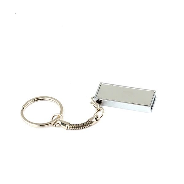 Прямоугольная металлическая флешка цвета металлик на 32 Гб. Извлечение флеш-накопителя осуществляется проворотом корпуса. Надежный флеш-накопитель весом 11 гр.