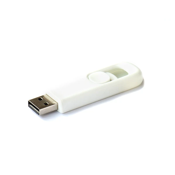 Прямоугольная пластиковая флешка белого цвета Слайд на 16 Гб. Извлечение флеш-накопителя осуществляется нажатием на специальную кнопку. Эргономичный флеш-накопитель со сглаженными углами весом 8 гр. Объема памяти 16 Гб хватит для полноценного хранения документов, музыки, видеозаписей и фотографий. Оснащена специальным ушком для крепления к кольцу или брелоку.