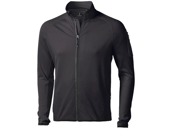 Куртка флисовая мужская Elevate Mani черной расцветки гармонично сочетает в себе классический и современный стили. Модель обладает дополнительным отверстием для пальца, не боится влаги, не теряет оригинальную текстуру при регулярной носке. Куртка также пропускает кислород, при этом оберегая кожу от потоков холодного ветра.