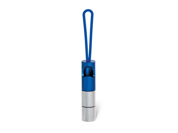 Алюминиевый серебристо-синий фонарь Mira с 1 LED, открывалкой и силиконовой петлей. Данный фонарь поставляется с 3 батарейками LR44.