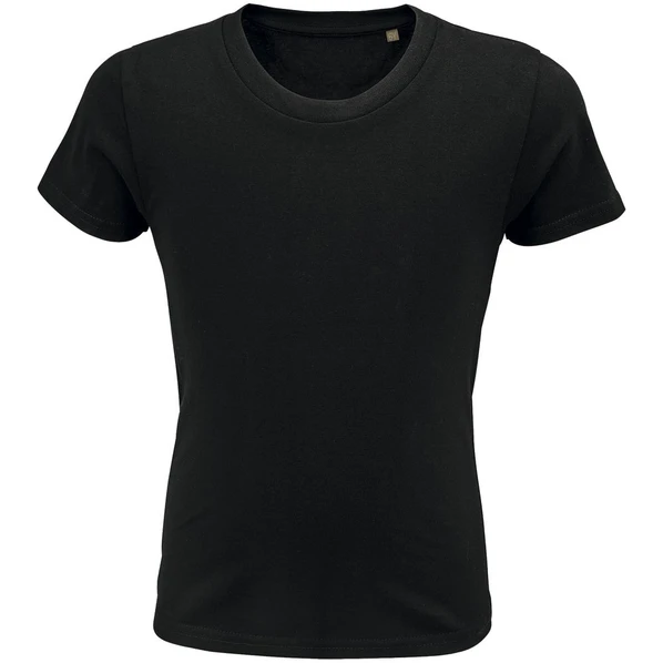 Детская кроеная облегающая футболка черного цвета. Модель из джерси с круглым вырезом.