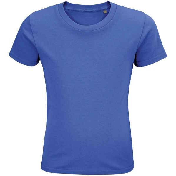 Детская кроеная облегающая футболка ярко-синего оттенка. Модель из джерси с круглым вырезом.