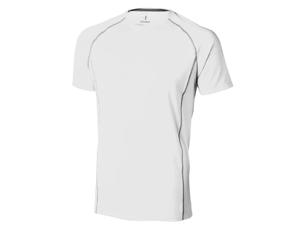 Белая футболка с короткими рукавами Kingston для мужчин. Стандартный покрой. Атласная лента внутри горловины. Воротник из ткани изделия. Отражающий лого сзади. Узкие контрастные полоски на рукавах реглан. Небольшой двойной шов на рукаве и внизу на кромке. Фигурные швы.